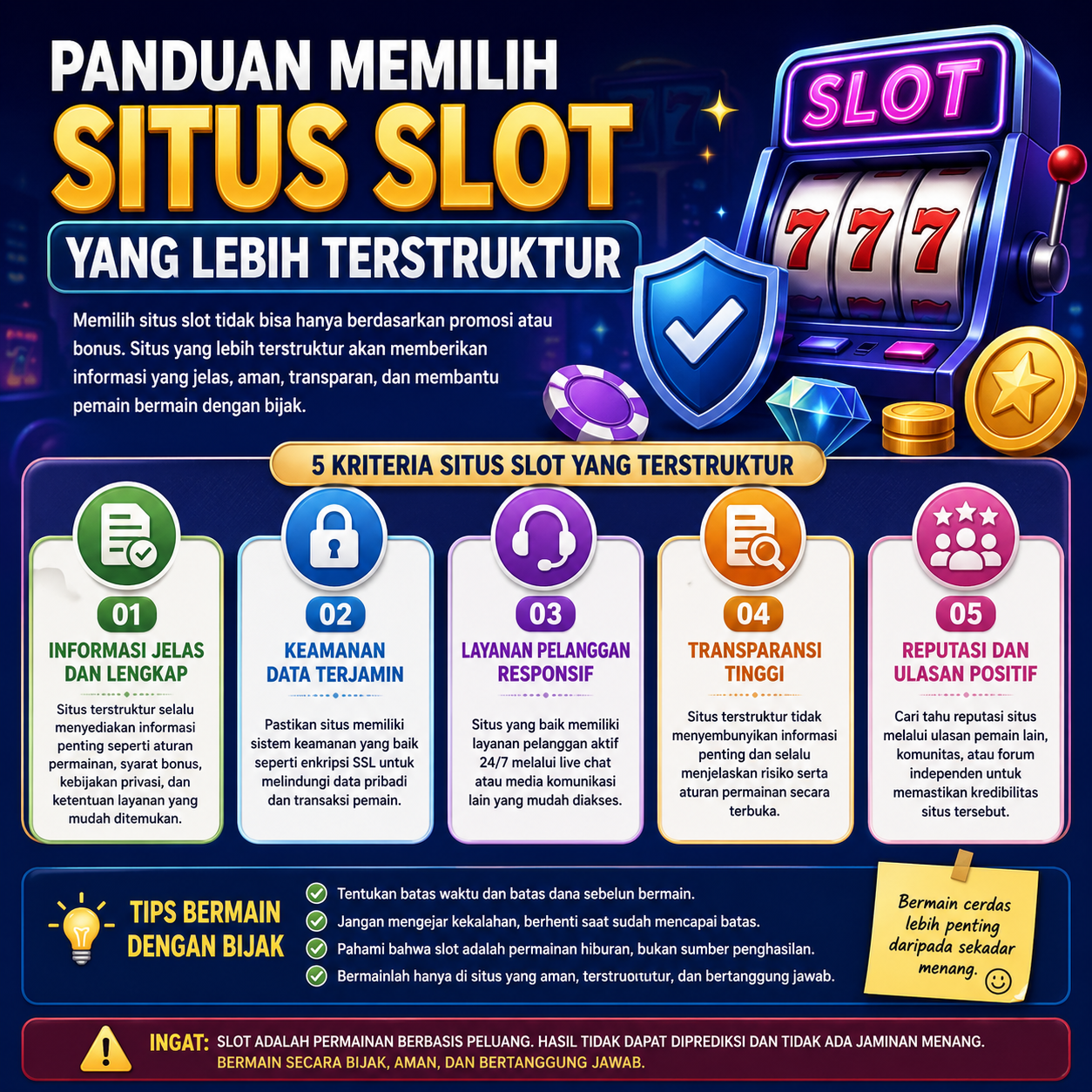 Situs slot yang lebih terstruktur umumnya menampilkan informasi dengan urutan yang masuk akal, mulai dari aturan penggunaan, fitur permainan, batasan akun, hingga kebijakan keamanan data. Pembaca sebaiknya tidak hanya melihat tampilan visual atau bonus, tetapi juga memperhatikan apakah situs tersebut memberi penjelasan yang jujur, mudah dibaca, dan tidak memaksa pengguna mengambil keputusan cepat.